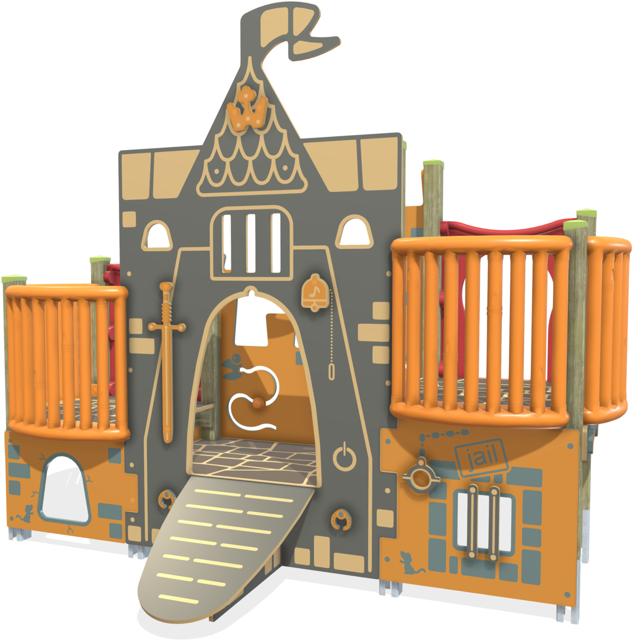 i mq. di gomma e sfuso indicati non sono necessari se l'attrezzatura è installata su prato o terreno naturale (altezza di caduta <100 cm.)
